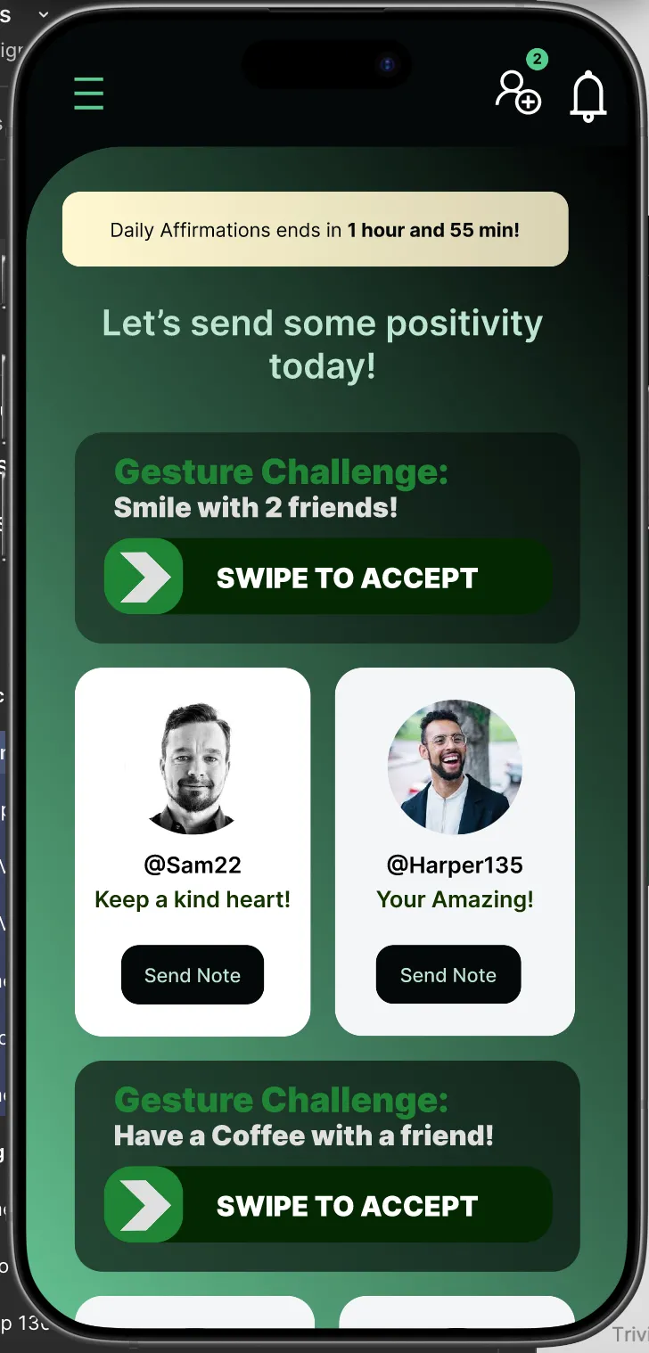 A social platform matching personalities and traits to spark meaningful conversations. Features complete UI/UX design, multi-user interactions, and database.