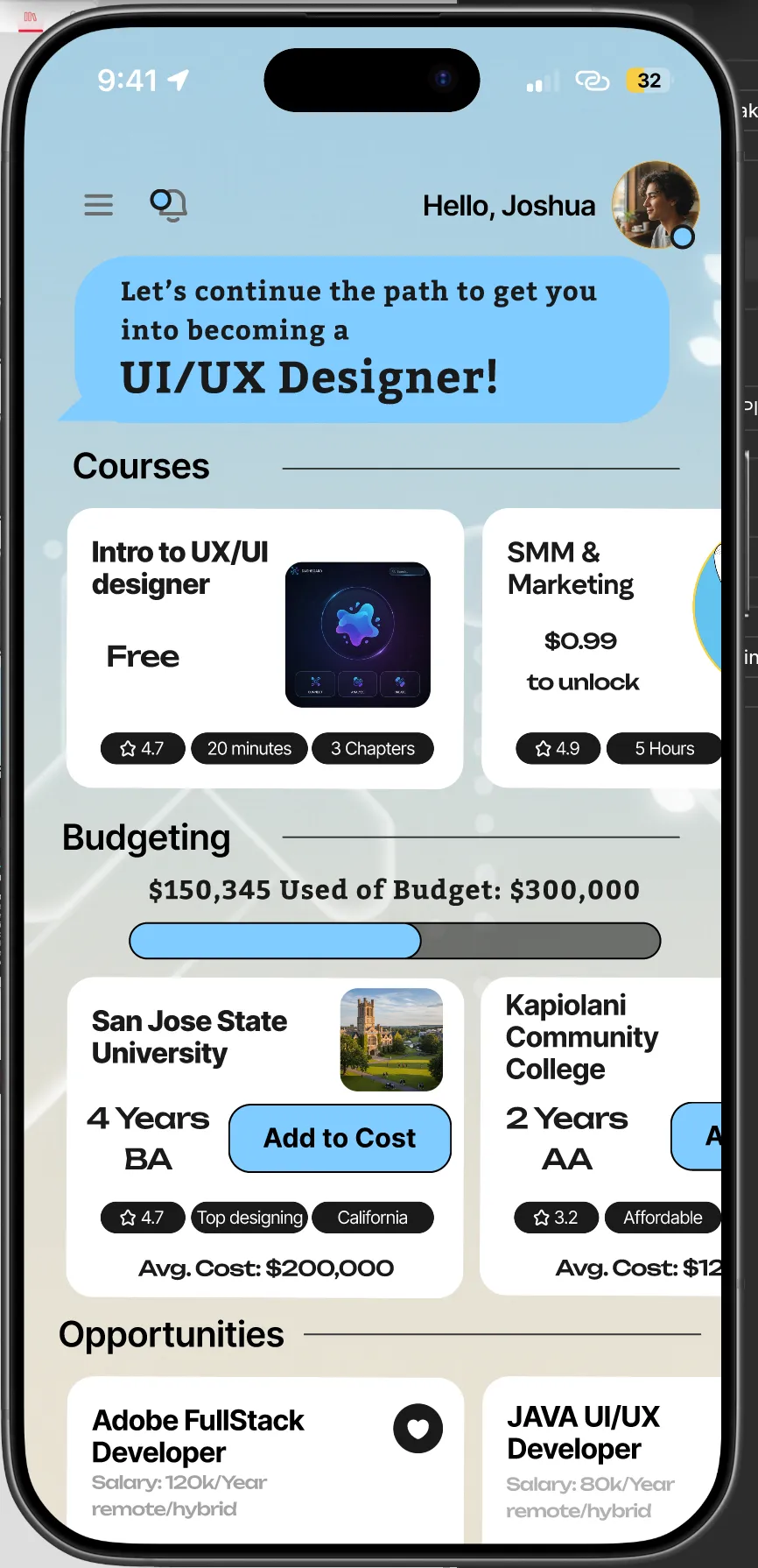 To ensure your project is built the right way, I always begin with a custom prototype tailored to your goals, timeline, and budget. Whether it's an interactive game-night trivia app, a TikTok-style social platform for pets, or a career-planning tool that helps students map out their future, a prototype allows us to explore ideas visually before development begins. My quotes are based on complexity, clarity, and the amount of work needed—designed to give you the best value without expensive costs for basic templates. The result is a clean, modern prototype that saves you time, money, and ensures your final product is exactly what you envisioned.